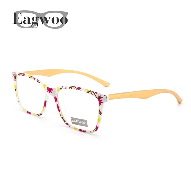 Women Designed Eyeglasses Frame Prescription Optical Frame Cat Eye Yellow Glasses With Spring Temple Flower Printing Multi Color